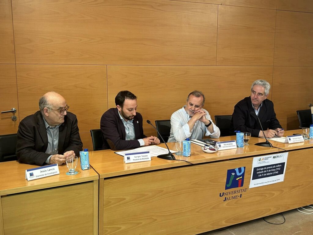 Castelló (12-01-2025). – La Càtedra Reciplasa de l’UJI ha convocat la nova edició de premis als millors TFG (Treball de Fi de Grau) i TFM (Treballs de Fi de Màster) enfocats en la gestió de residus urbans i protecció del medi ambient. Amb aquesta iniciativa, la Càtedra pretén incentivar els treballs relacionats amb aquesta temàtica premiant projectes de qualitat, amb 500 euros al millor TFG i 1.000 euros al millor TFM.